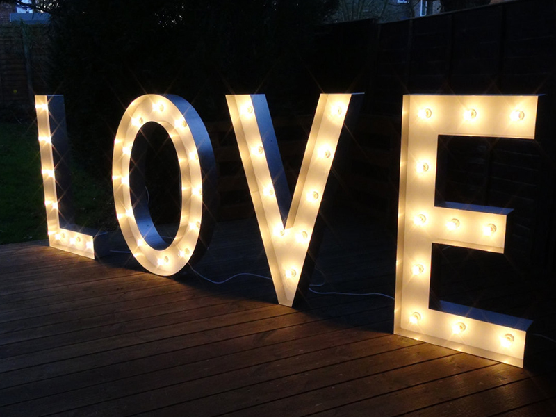 Letras 3D para bodas , 15 años ,Eventos especiales e inauguraciones. Iluminadas con luces de leds blancas o de color , para eventos nocturnos.