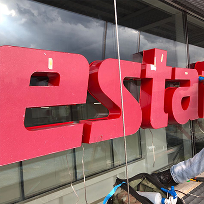 Letras volumétricas frente en acrilico y marca Plastiglas, con iluminación directa e instalación.